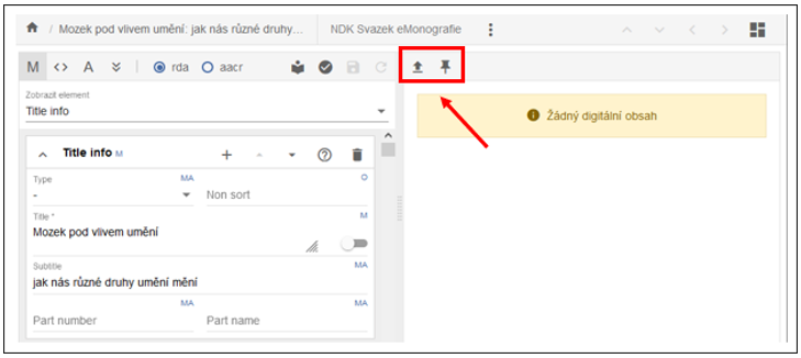 Doporučujeme zkontrolovat např. pole Fyzický popis, které se někdy chybně vyplní (stáhne) jako „print" namísto správné hodnoty „electronic" (lze upravit vybráním z rozbalovací nabídky).