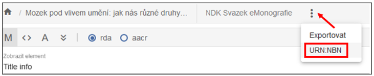 Přidělení URN:NBN je povinné pro export dokumentů ve formátu NDK PSP a archivních balíčků.