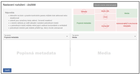 Pomocí tlačítka Rozložení v pravém horním rohu obrazovky si můžete nastavit panely, se kterými chcete pracovat.