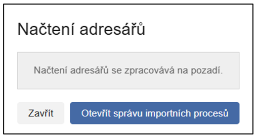 Systém následně informuje o tom, že průběh importu lze sledovat ve Správě procesů.
