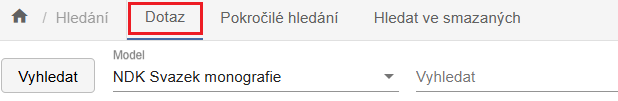 Při použití volby Dotaz máte k dispozici jedno vyhledávací pole ve spojení s vybraným modelem.
