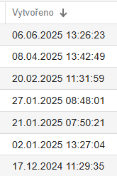 Příklad sestupného setřídění podle data vytvoření:
