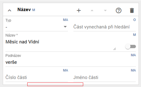 Povinná pole (např. název) jsou vždy rozbalená a v případě chybějící hodnoty zvýrazněná červeně.