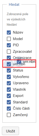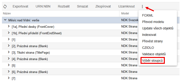 Pokud často zadáváte metadata ručně, doporučujeme zapnout rozbalování polí při založení objektu. Toto nastavení lze definovat pro konkrétní modely (např. NDK svazek monografie). Po uložení se model přesune na začátek seznamu.
