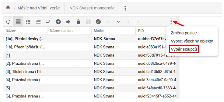 V seznamu hodnot ve formuláři NDK strany pak je k dispozici stejně uspořádaný seznam: