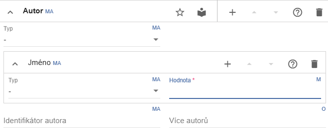 Pole pro autora se pak rozbalí již při založení nového objektu, i když je prázdné: